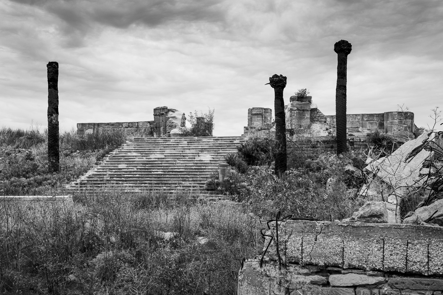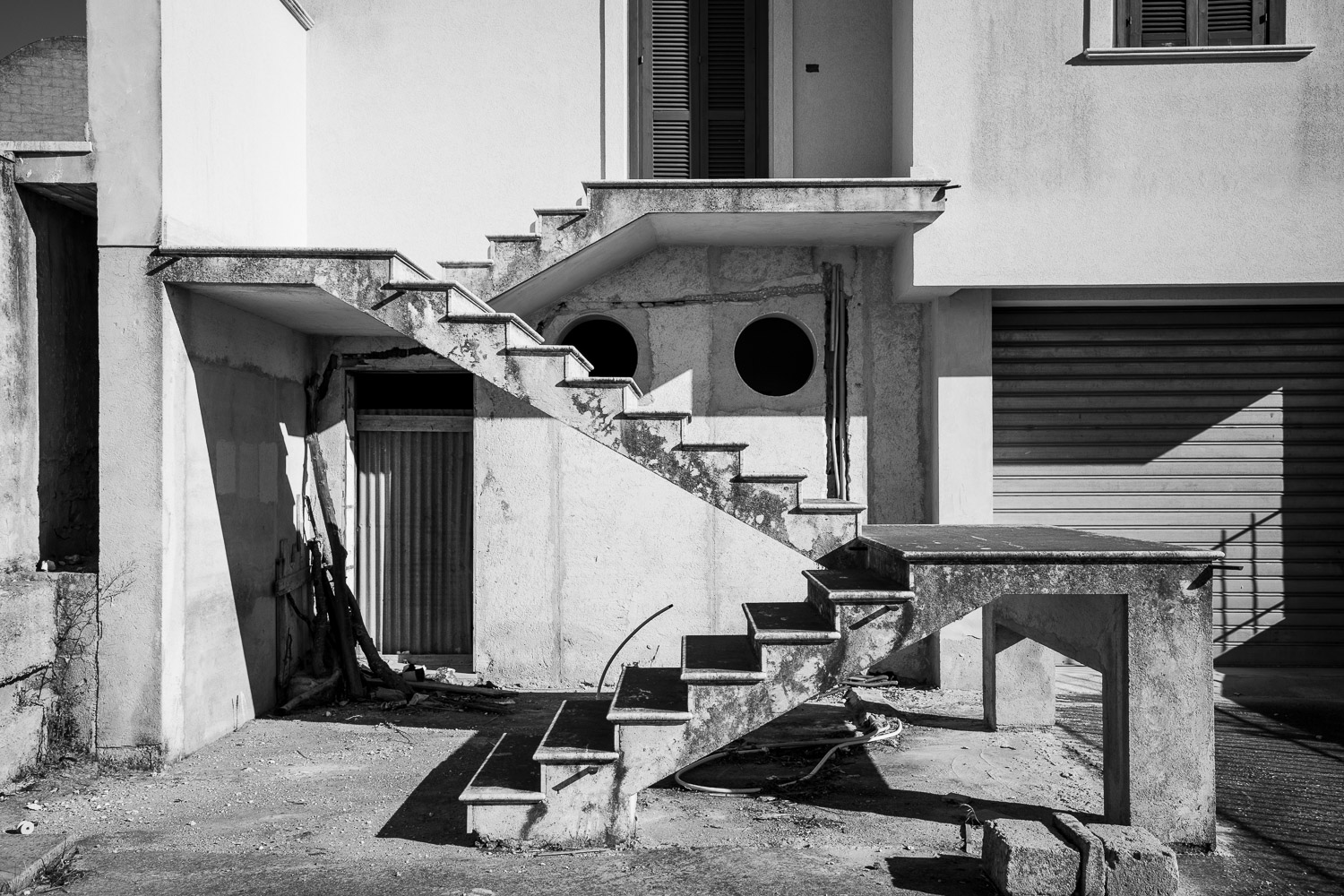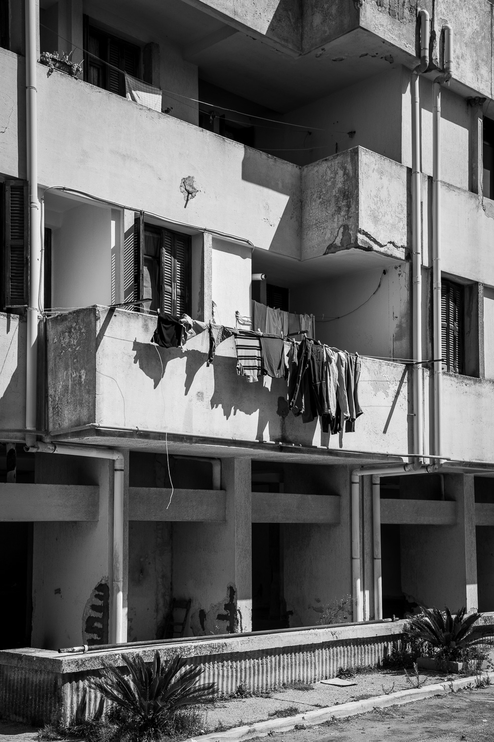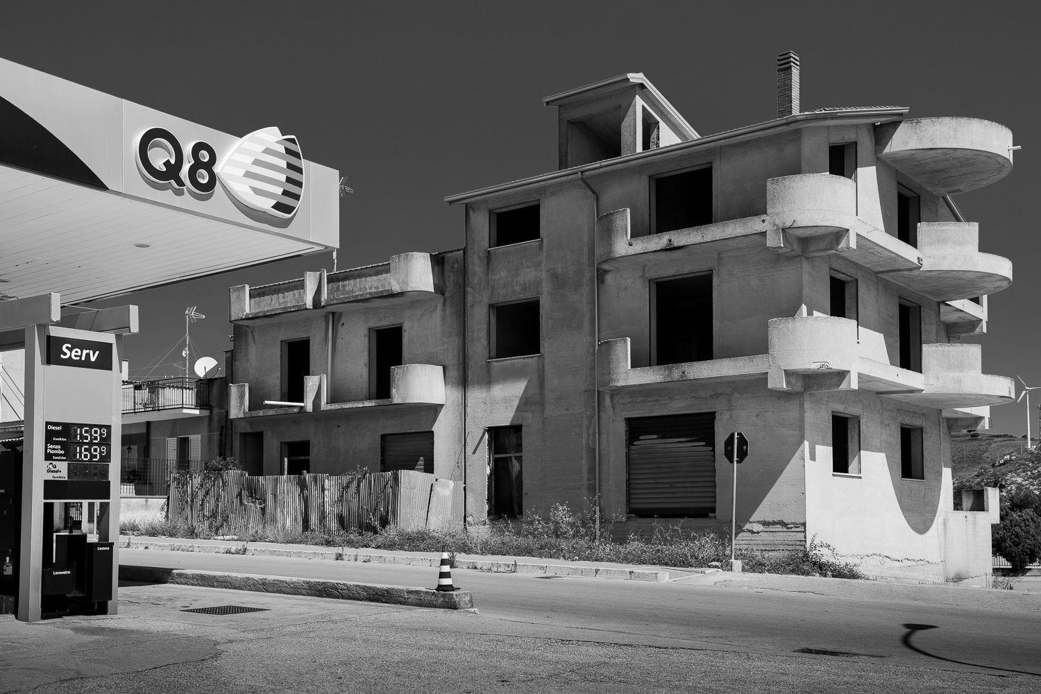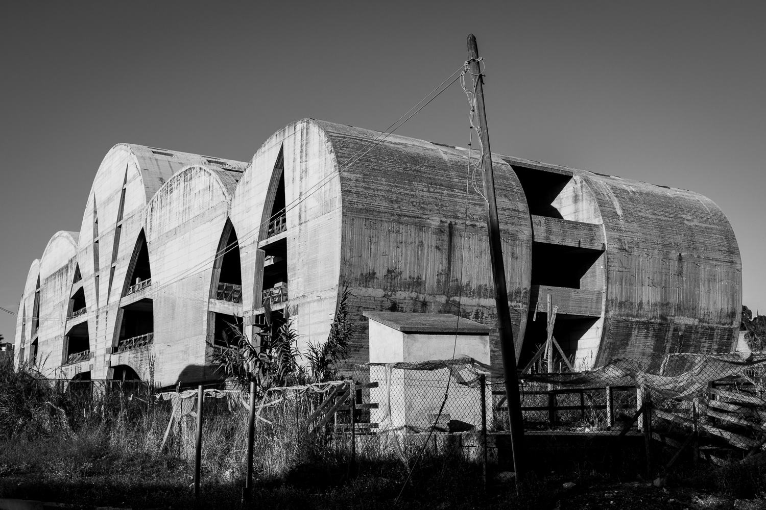 Fifty years ago a major earthquake destroyed most of the villages in the Belice valley in southwestern Sicily. In some villages a few houses have been reconstructed for some inhabitants to return, but even today large parts of these villages are still in ruins and mostly deserted, so they appear like ghost towns. Some other villages have been relocated to another place nearby and newly rebuilt from scratch in a postmodern or brutalist design, but they often remain unfinished. Over the years their unneighbourly habitats have also been deserted particularly by the younger generation and they thus equally appear like ghost towns of a different kind.