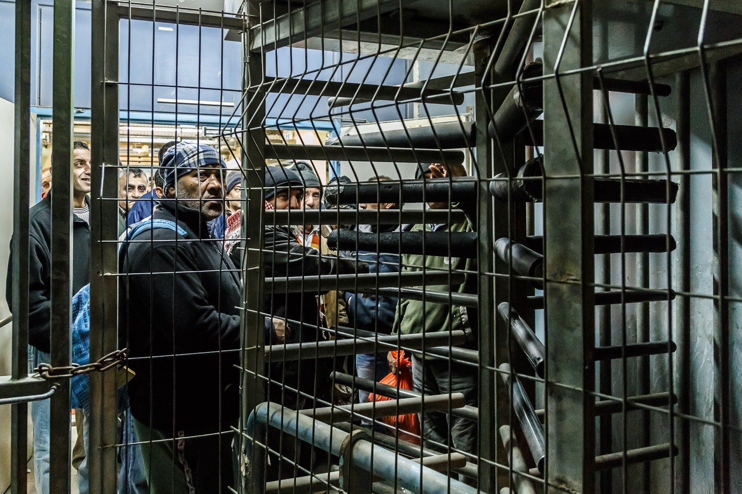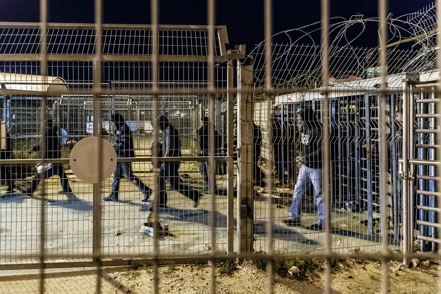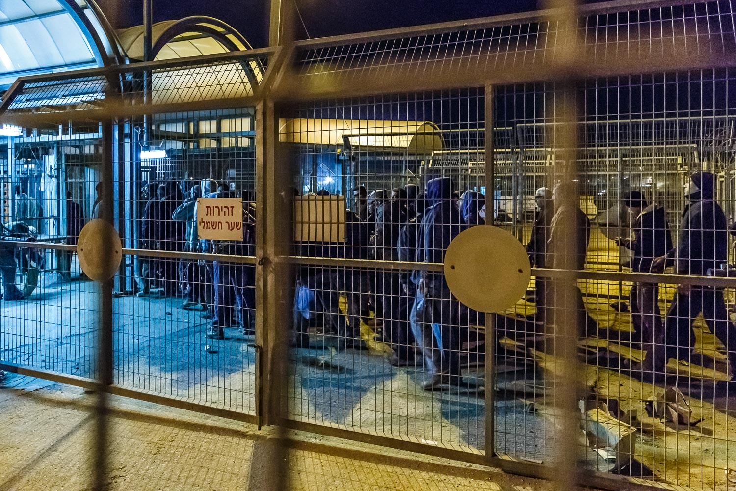 Palestinians living in the West Bank, who have a permit to work in Israel during the day, must pass through the checkpoint at Irtah early in the morning.