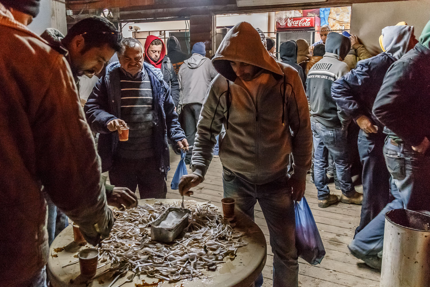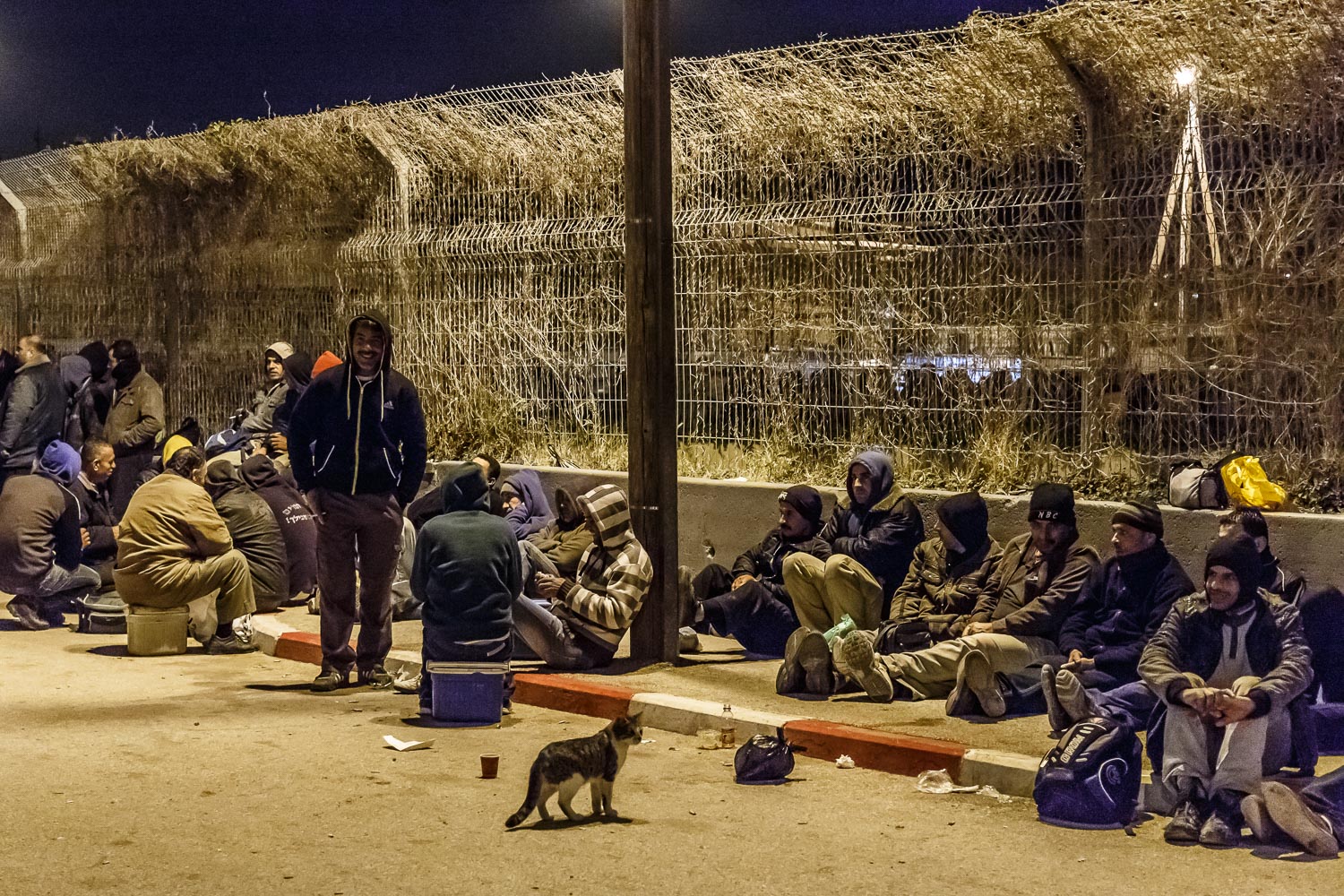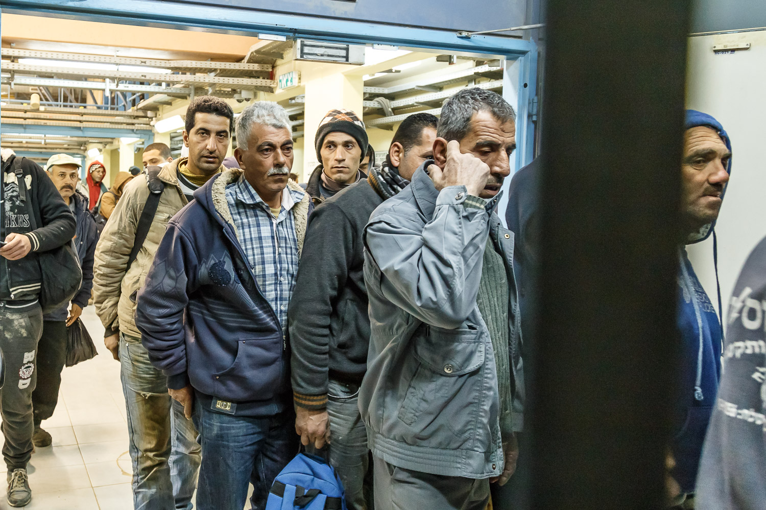 Palestinians living in the West Bank, who have a permit to work in Israel during the day, must pass through the checkpoint at Irtah early in the morning.
